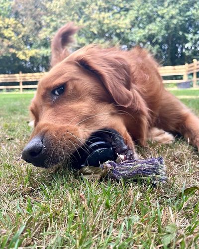Then comes everyone’s favourite part of the day (staff and dogs alike) which also happens to be the bulk of the day... It’s play and exercise time! Interspersed with enrichment time within their individual kennels, and bath time for those dogs whose owners have requested one, and whose stay ends the following day. Dogs get out one household at a time into one of our securely fenced paddocks allowing them off lead time with our staff and the pleasure of enjoying all the toys and equipment exclusively, although some prefer cuddles and love… something our team are always more than happy to give!